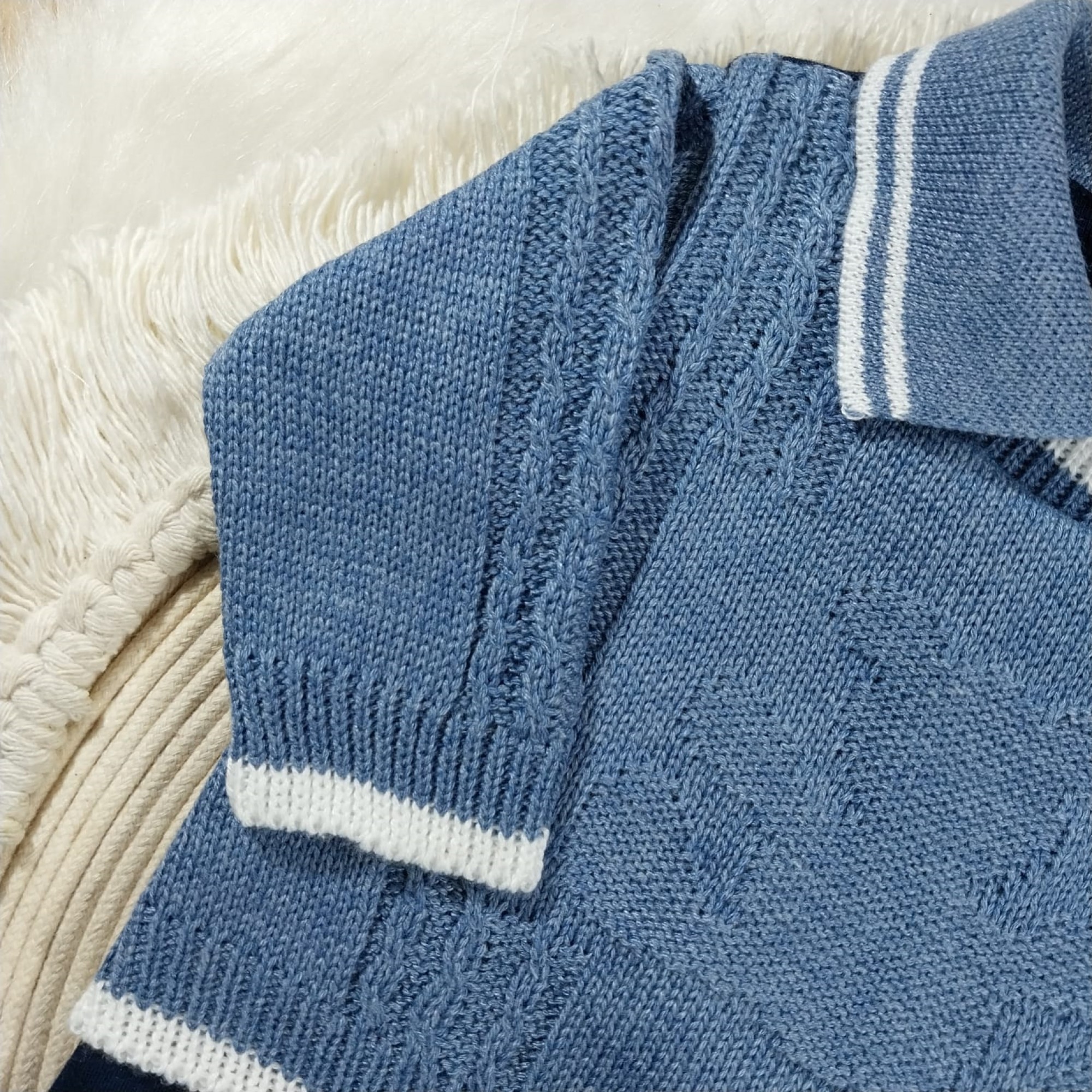 Macacão Tricot e Malha com Gola Polo Azul Jeans e Marinho